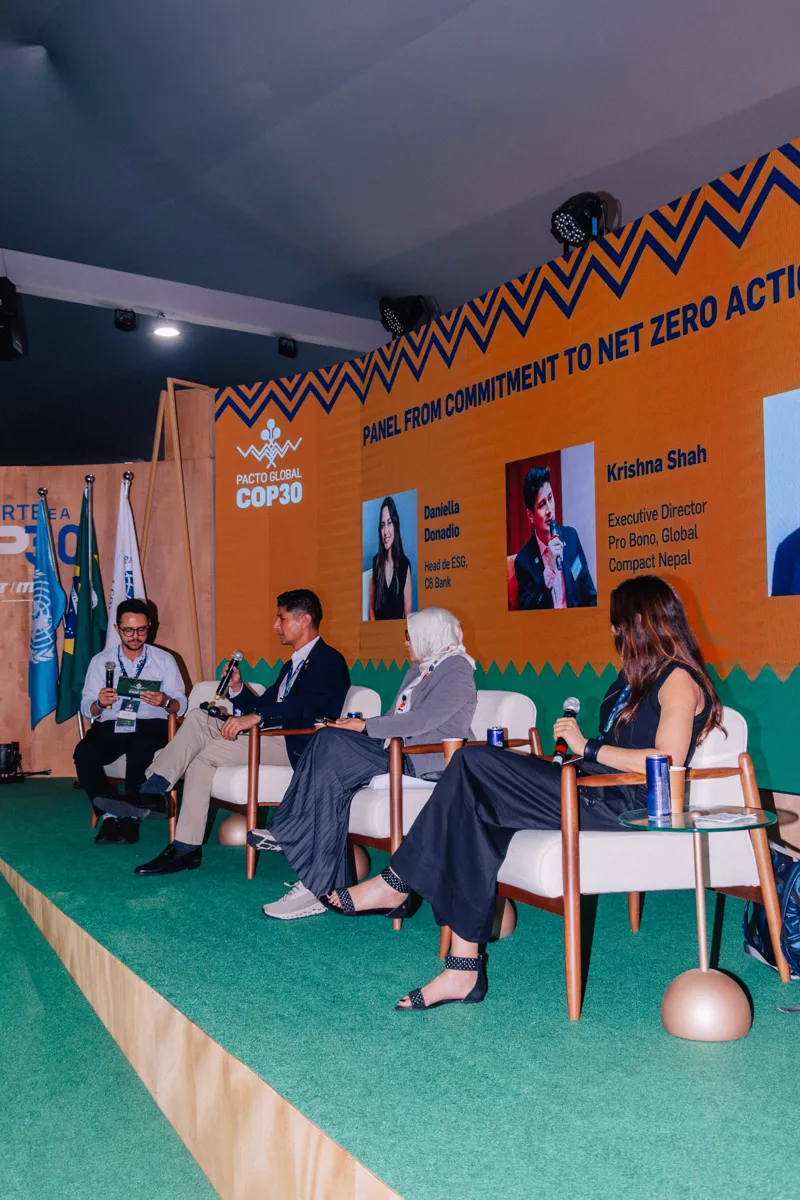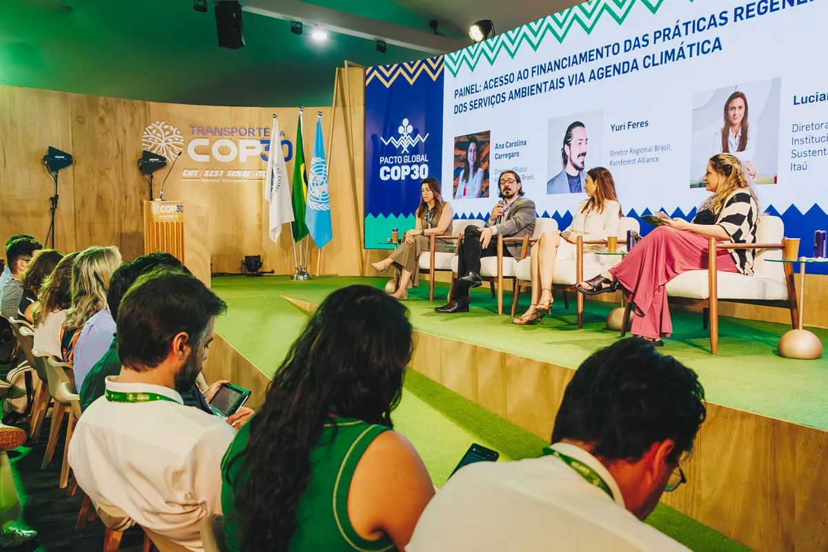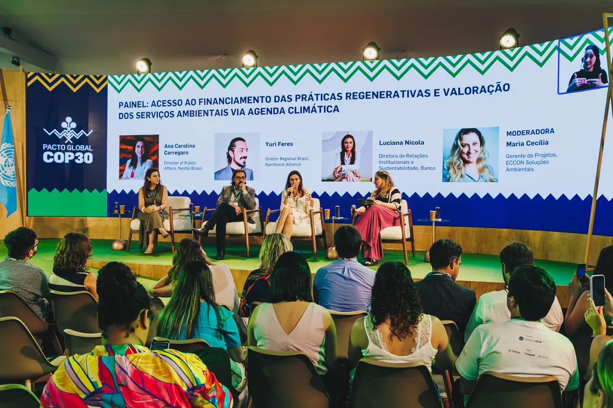 O espaço do Pacto Global da ONU - Rede Brasil na COP30 para dar voz às empresas, compartilhar soluções e ampliar o impacto coletivo pelo clima.