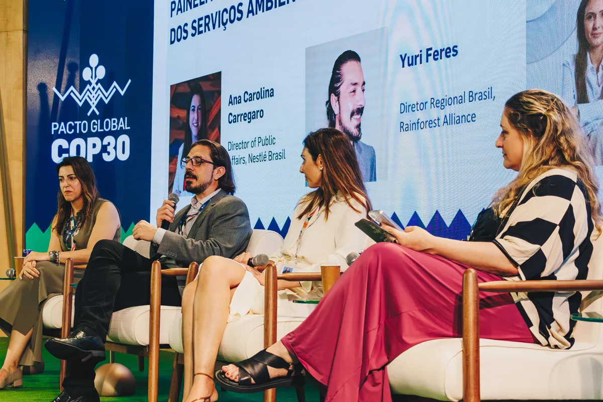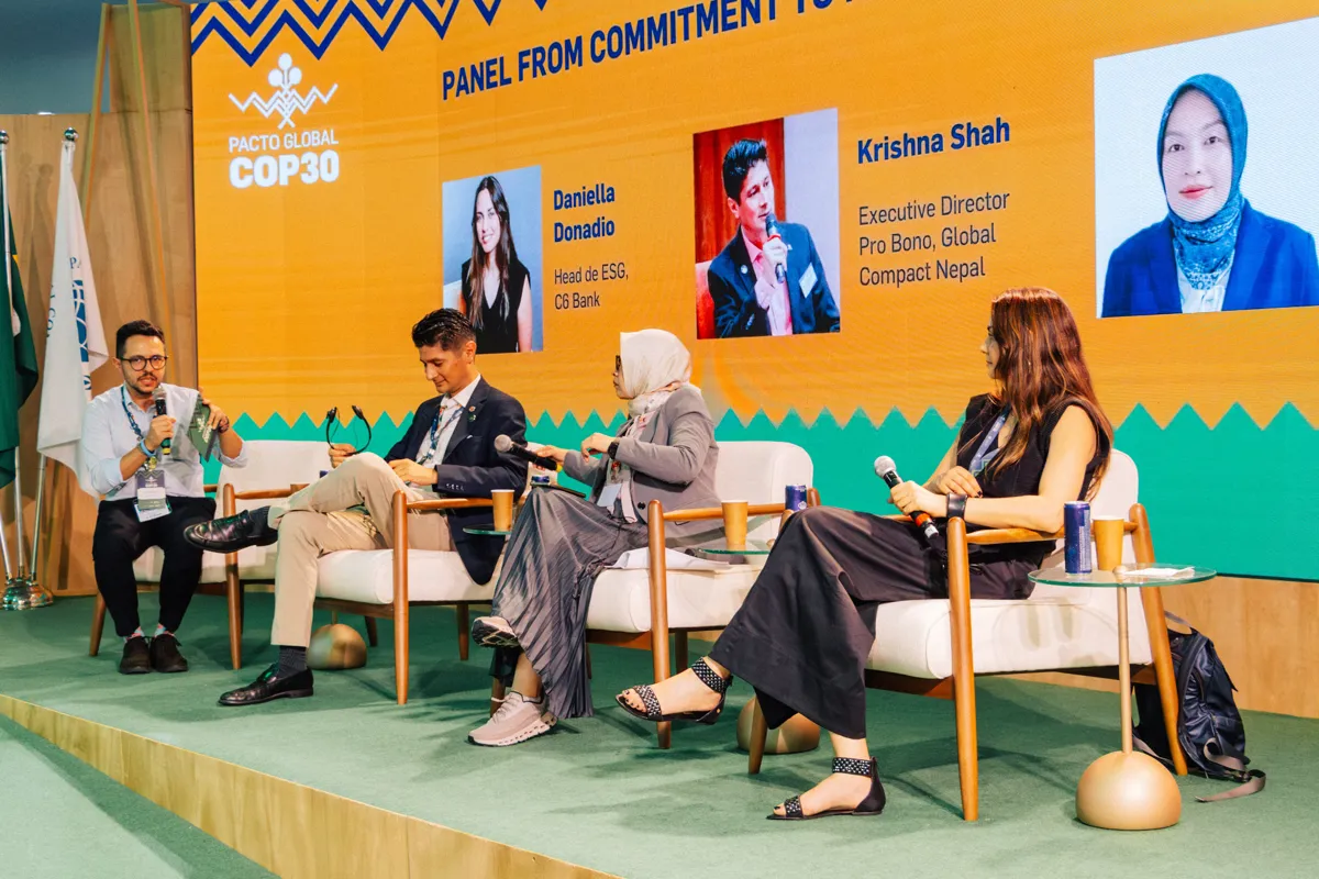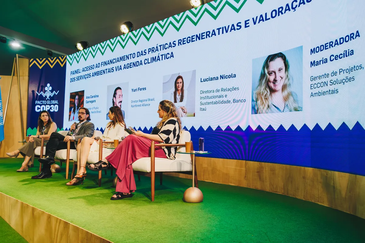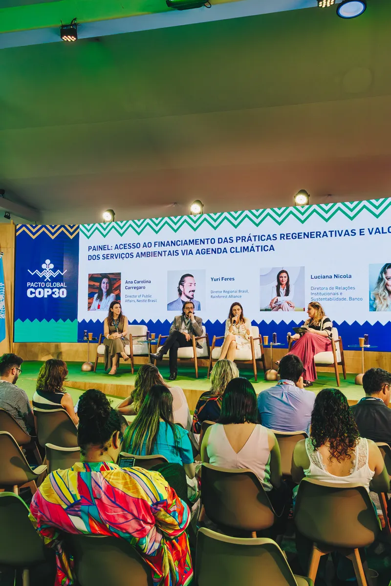 O espaço do Pacto Global da ONU - Rede Brasil na COP30 para dar voz às empresas, compartilhar soluções e ampliar o impacto coletivo pelo clima.